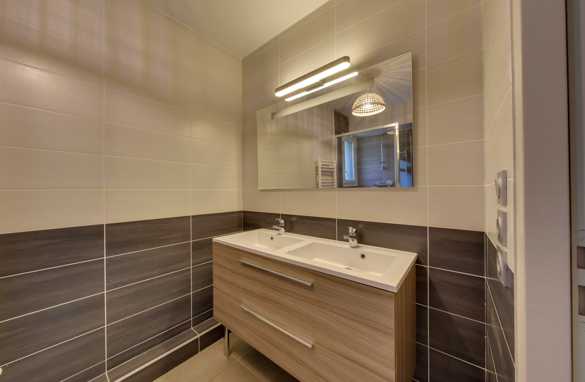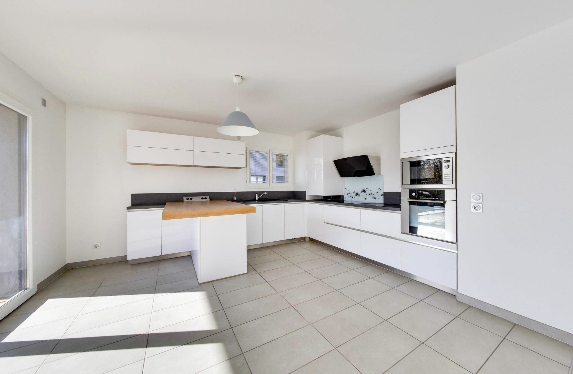 Il est composé d’une vaste pièce de vie baignée de lumière qui s’ouvre naturellement sur une terrasse de 48 m² offrant une vue dégagée et imprenable sur Belledonne. La cuisine, élégante et parfaitement équipée, renforce l’impression d’un espace cohérent, fonctionnel et haut de gamme.