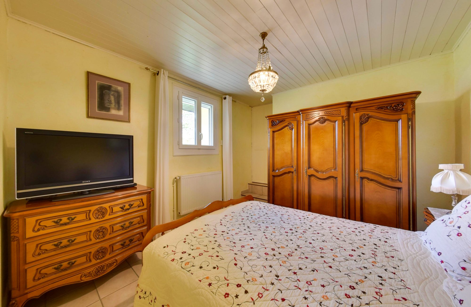 Côté prestations, dès l’entrée, un portail électrique s’ouvre sur un espace parking avec un garage bien séparé de la terrasse carrelée et du jardin arboré. La maison est entièrement équipée en double vitrage et est chauffée au gaz de ville (DPE D).