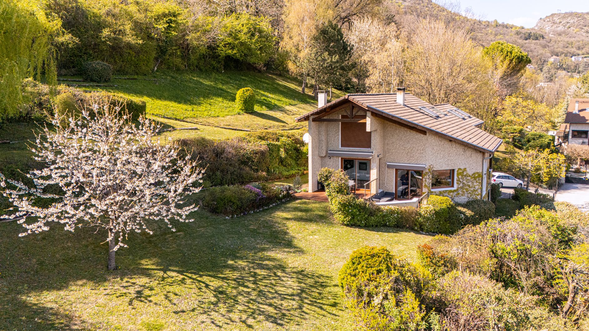 Implantée sur une vaste parcelle de 1 965 m², cette propriété profite d’une vue dégagée à couper le souffle et d’un ensoleillement remarquable du matin au soir.