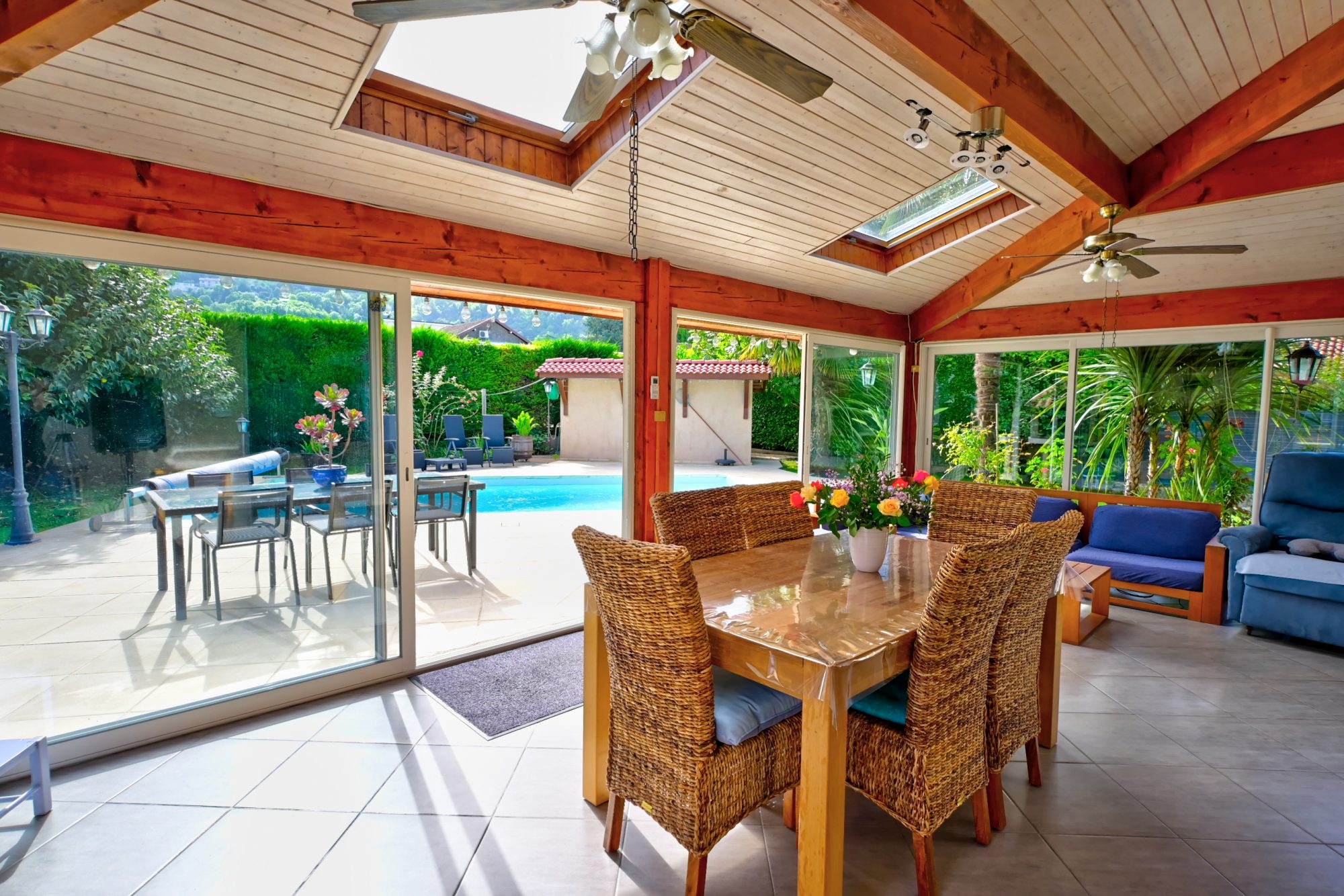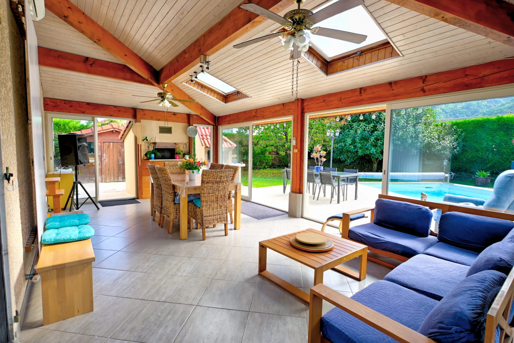 Au rez-de-chaussée, vous serez séduit par le vaste séjour de 30 m² avec cheminée et sa véranda baignée de lumière qui créée la parfaite transition entre espaces intérieurs et extérieurs, idéal pour des moments conviviaux en famille ou entre amis. La cuisine équipée donnant sur le séjour et la véranda, est pratique et fonctionnelle. La Véranda, quant à elle, profite d'un joli four à pizza intégré et de la climatisation. Une salle d'eau avec WC complète ce niveau.